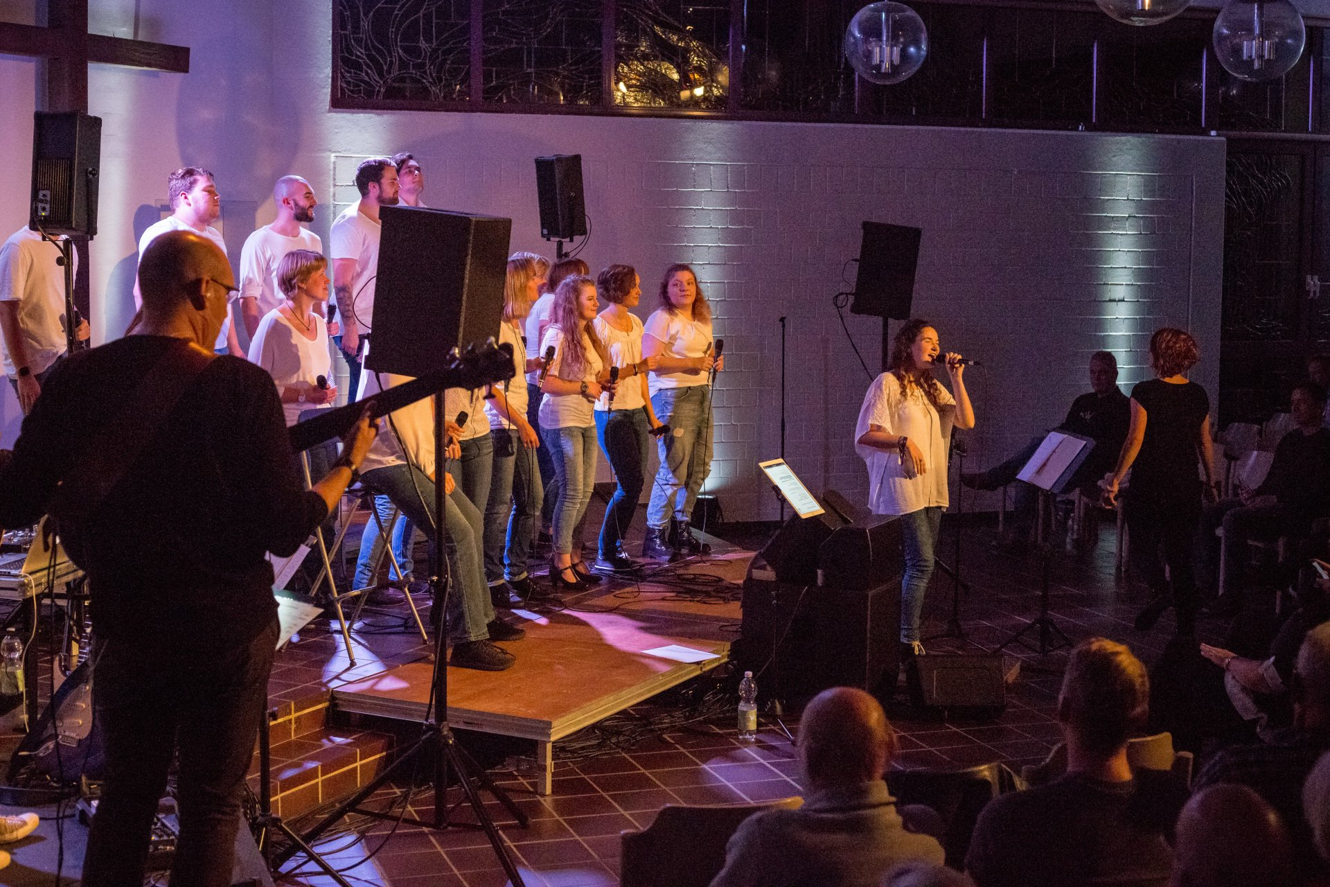 Wir kommen mit Chor, Solisten und Band. Euren Gottesdienst ergänzen wir nicht nur mit eigenen Songs, sondern auch mit Liedern zum Mitsingen, bei denen wir die Gemeinde begleiten.